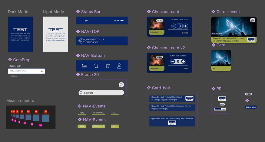 An interface for the event list was developed, featuring simple sorting by date and preference. A ticket purchase screen and a search screen were also created. Additionally, a welcome screen and a user profile section were developed.
