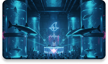 A decision was made to use three primary colors: dark blue as the main background fill, a yellow (shifted toward the green spectrum) and gray for various interface elements. The shark was designed in Illustrator and combined with the Bruno Ace typeface. This font and these colors effectively captures the atmosphere of the techno style.